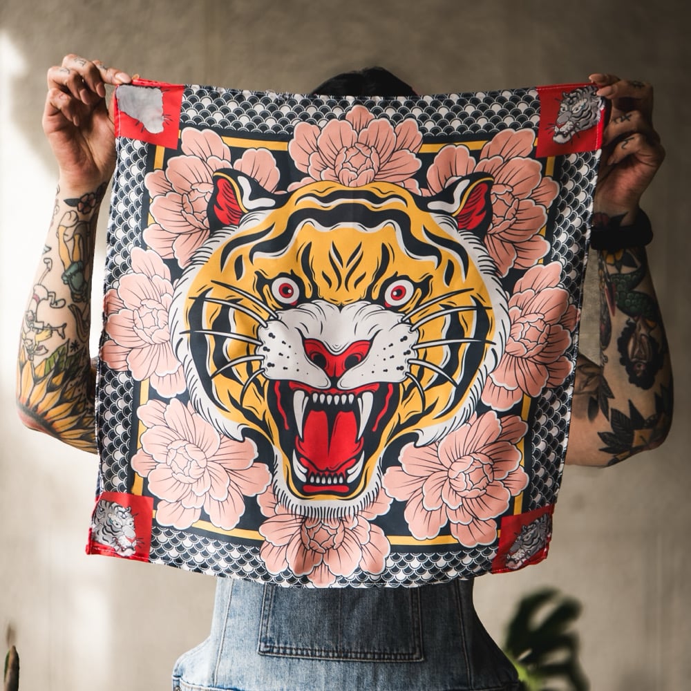 This bandana blends style, culture, and design. Inspired by traditional Japanese tattoos, its artwork conveys strength, balance, and a deep connection with nature.